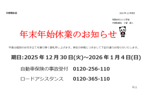 【年末年始休業のお知らせ 2025年12月30日(火)~2026年1月4日(日)】